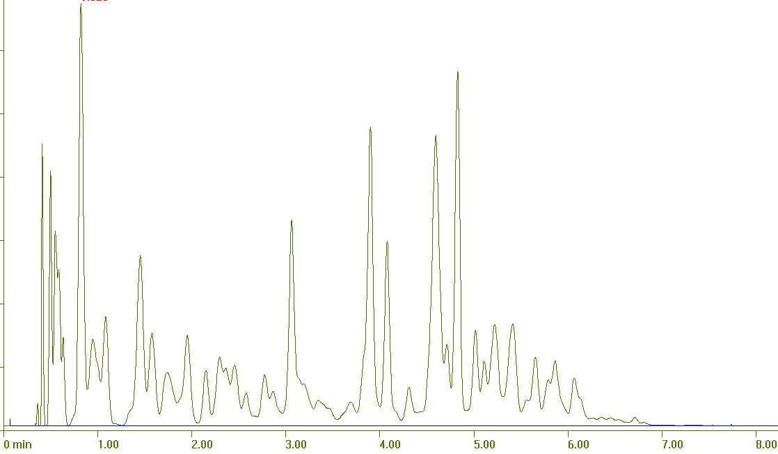 ① 0號柴油色譜摹擬分餾油樣譜圖: