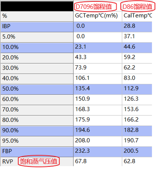 - 國5柴油ASTM D7096全餾程值和GB/T6536(ASTM D86)的首要餾程值。