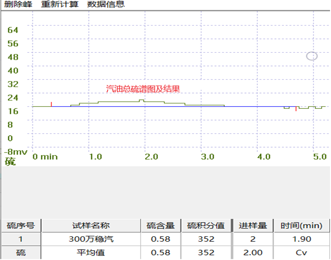 ⑥ 汽油總硫印刷品譜圖及報告書: